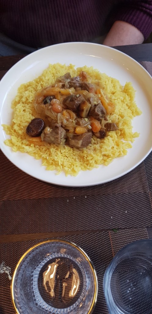 Alf, meanwhile, ordered Plov, Azerbaijan’s take in pilaf rice. It consisted of stewed beef with carrots, chestnuts and, I believe, apricots on a bed of rice. Again, simple stuff, but done well and very tasty.