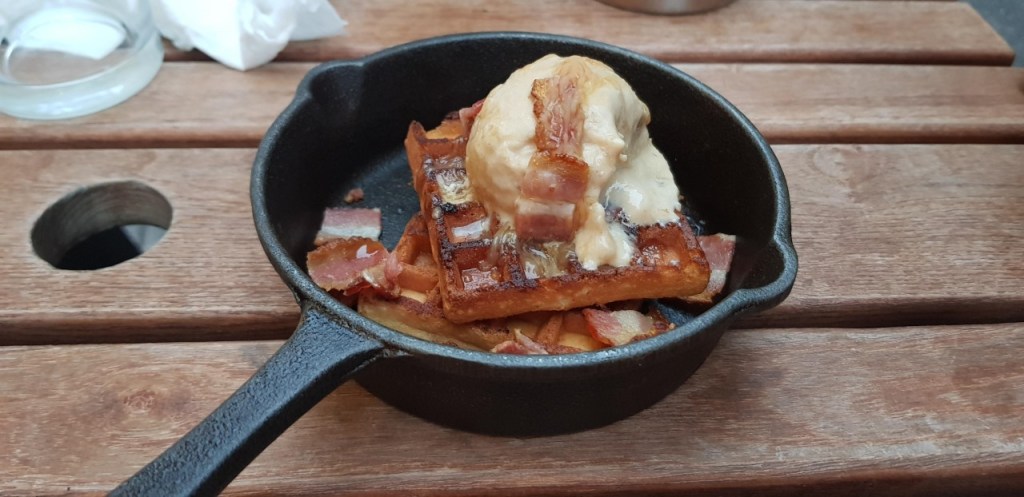 For dessert, we ordered something called Sweet Bacon Waffle. I quite like the idea of saltiness with sweet things – salted caramel ice cream, for instance – but this just tasted weird. The porky flavour of the bacon cutting through into the ice cream was quite an odd combo.